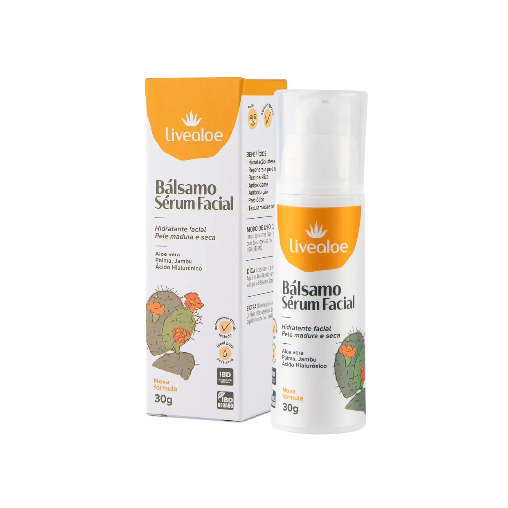Dica: Umedecer a pele com a Água de Aloe Nutritiva e depois aplique o Bálsamo Sérum Facial