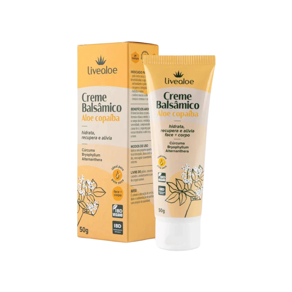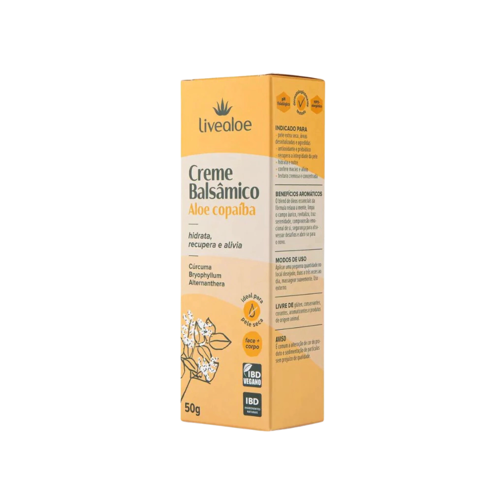 O Creme Balsâmico com ingredientes naturais como Aloe Vera, Copaíba e outros óleos essenciais que nutrem, conservam e ajudam na recuperação da pele.
